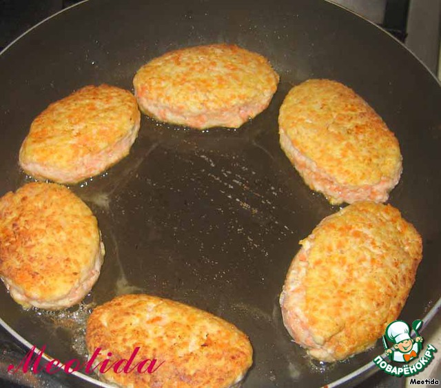 на раскаленной сковородке в небольшом количестве масла слегка обжариваем котлеты с двух сторон