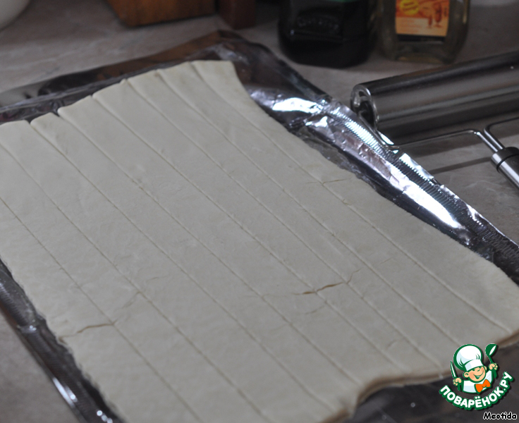 Тесто раскатываем и нарезаем полосками,