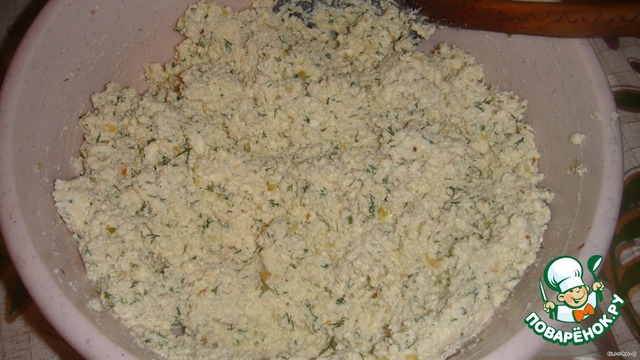 Свежий укроп мелко нарезать, тоже добавить в творог,