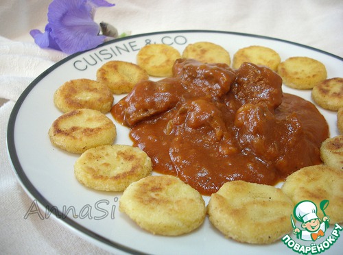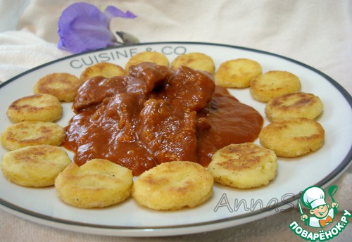 Я подавала блюдо вместе с гуляшом по-триестински http://www.povarenok.ru/recipes/show/26128/, так сказать - полный итальянский комплект. Соус от этого гуляша прекрасно сочитается с ньокками.
