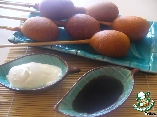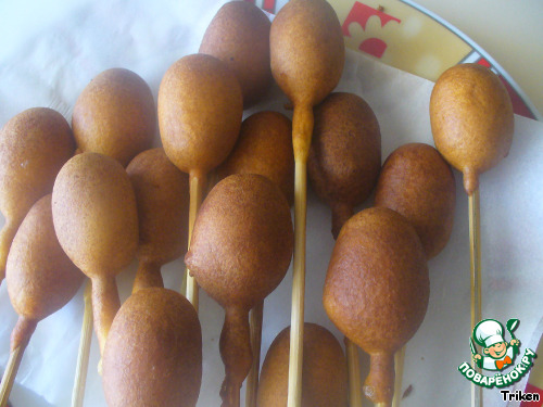 | Эти американские сосиски в нежном кукурузном тесте, которое практически не впитывает масло для жарки, обязательно привлекут внимание гостей и их детей. Они просты в изготовлении и эффектно смотрятся на любом столе, а с разноцветными шпажками для коктейлей становятся просто неотразимы. На сайте есть похожий рецепт, но тесто в нем получается совсем не таким гладким, а покрытие - ровным. |