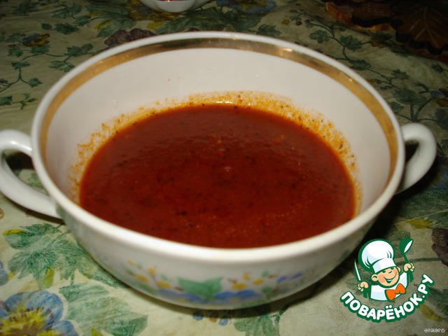 На сковороду налить немного растительного масла, добавить томатную пасту и немного ее разогреть. Затем добавим кипяток для нужной густоты. После этого добавляем приправы и чеснок по вкусу. 3-5 минуты варим и соус готов.