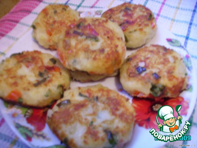 Чеснок пропустить через чесночницу. Посолить и поперчить по вкусу. Добавить зелень. Хорошо всe перемешать, сформировать круглые лепeшки и обжарить на сковороде с растительным маслом.