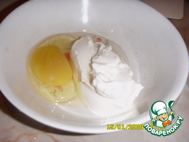 Делаем заливку (можно любую, на свой вкус): яйцо + сыр сливочный