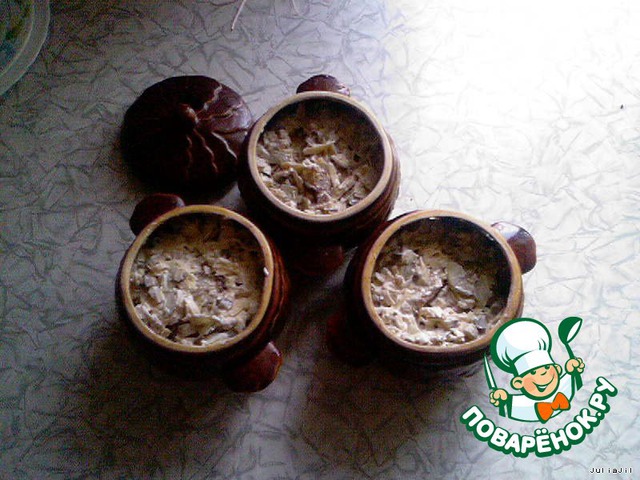 Ну, а теперь накрываем горшочки крышечками (у меня всё это вместилось в 3 горшочка) и отправляем в духовку на минут 15-20.