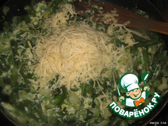 Добавить предварительно натёртый сыр, и ещё раз перемешать.