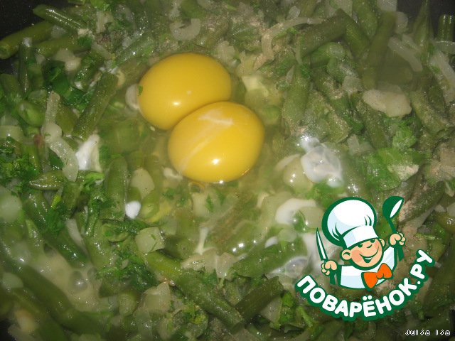 ..и сразу же их перемешать, так чтобы яйца равномерно распределились по овощам.