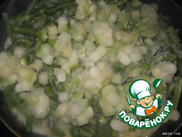 И через пару минут кабачки (у меня были замороженные, нарезанные кубиками).