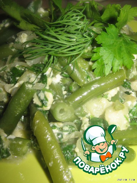 | Очень всe такое зелeненькое и весеннее получилось в моeм гарнире... Сочетание стручковой фасоли и кабачка - оказывается очень вкусное... |