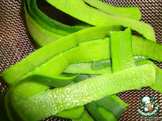 "Ленточки" из кабачков сварить (минут 5) в кипящей воде.