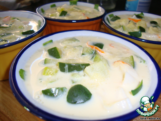 | Предлагаю Вам рецепт запеканки из кабачков и крабовых палочек. Очень нежно и вкусно. Если вам надоели одни и те же блюда, то этот флан для Вас! |