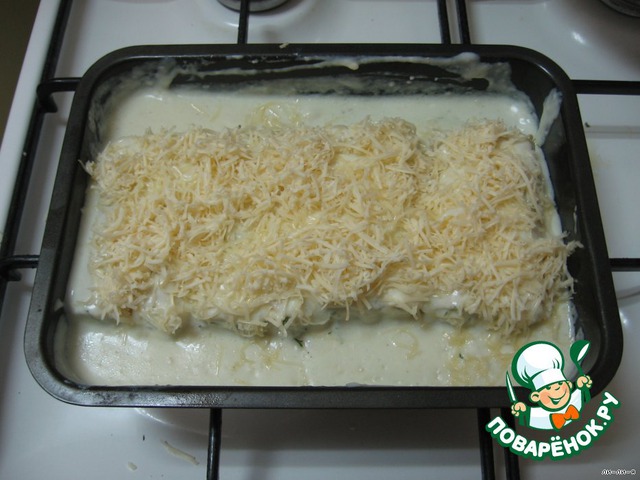 Выложить каннеллони и полить оставшемся соусом.