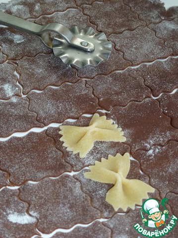 | Вкусные шоколадные бабочки Farfalle, сделанные своими руками, порадуют вас и удивят родных! Отваривают их 2-3 мин. Не слипаются, не развариваются, не теряют форму. Подавать их можно с шоколадом, заварным кремом, сгущенкой, сливочным маслом, сахаром, сиропом, джемом, медом - на ваш вкус... Если вы не хотите отваривать все фарфалле, их можно подсушить на столе, убрать в пакет и положить в морозильную камеру. При необходимости достать и отварить, не размораживая... Я очень ими довольна!!! |