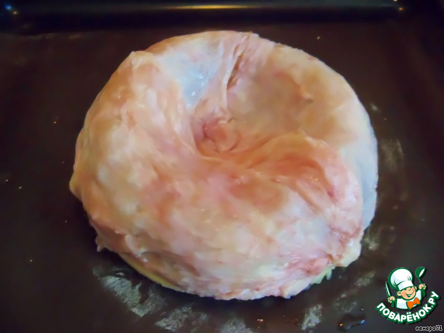 Куриной кожей покрыть фарш.