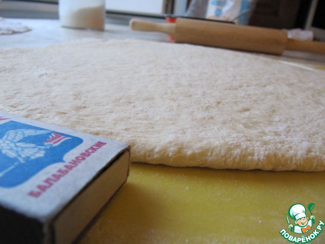 Тесто раскатываю на силиконовом коврике, мне так удобно. Толщина, на мой взгляд, должна быть примерно 1,5 см.