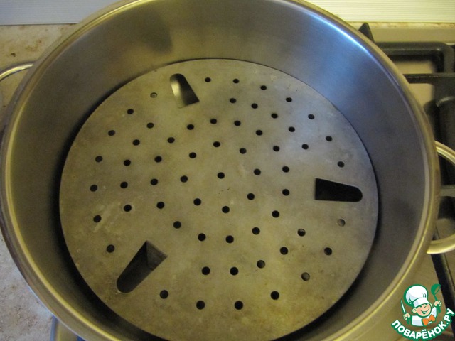 Варить можно в мультиварке, пароварке, но я буду варить вареники как это делала моя бабушка. использую "фамильное серебро" в виде древней пароварки. В кастрюльку налить воды, чтобы она не касалась на пару см пароварки.