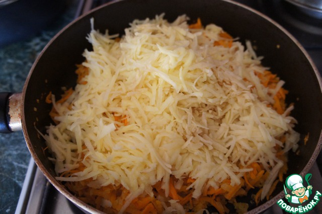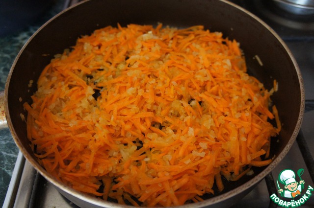 добавить морковь и обжаривать 5 минут.