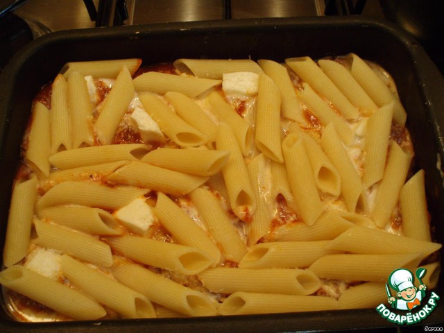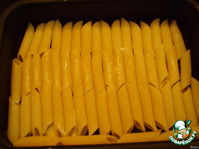 Выкладываем макароны на смазанную сливочным маслом форму.