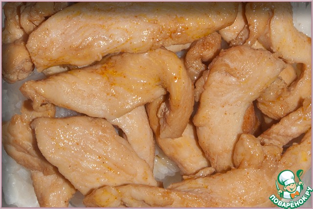 На рис выкладываем жареную грудку.