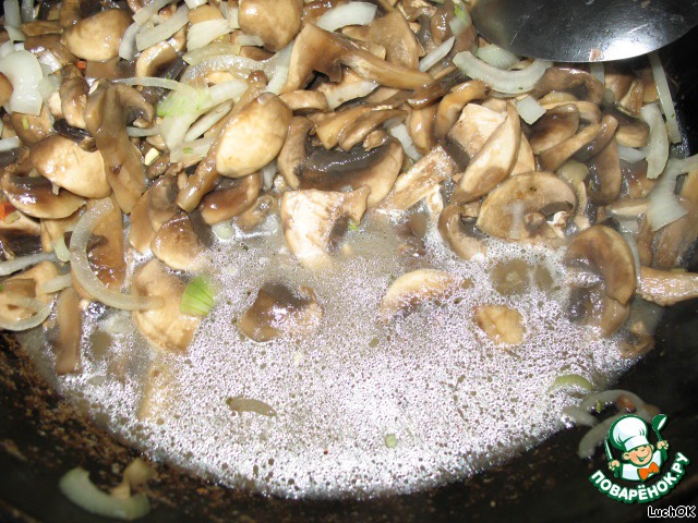 В процессе жарки будет выделяться много жидкости. Наша задача ее выпарить.