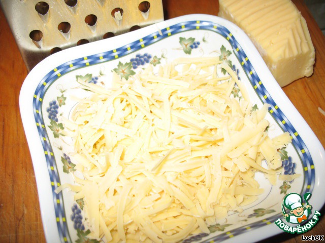 Потереть на крупной терке 150-200г любого твердого сыра.