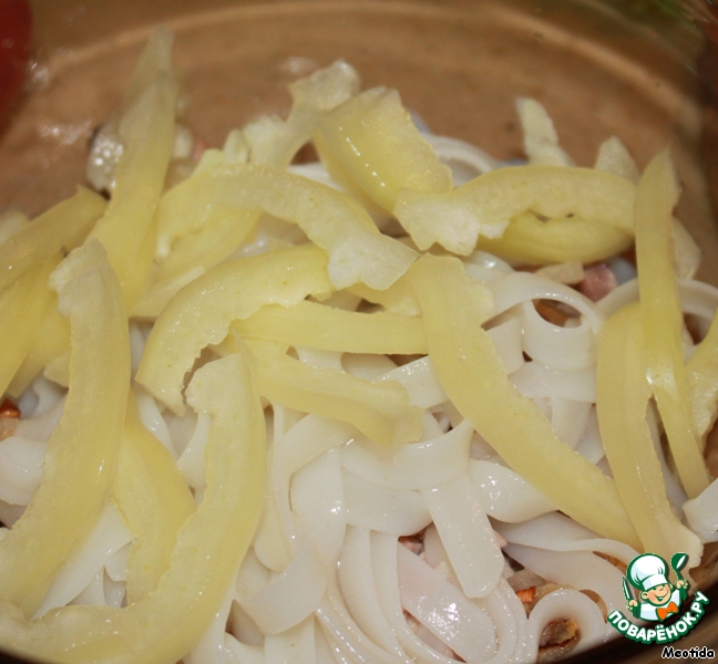 Заливаем суп водой, в которой варилась лапша, приправляем солью и молотым черным перцем, по вкусу.