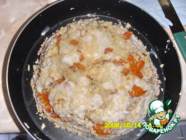 Курицу прокрутила ч/м, овощи слегка обжарить, на форму смазанную маслом, посыпать голландским сыром.