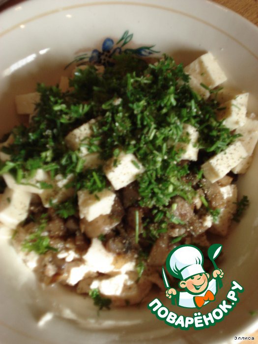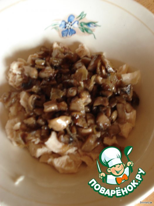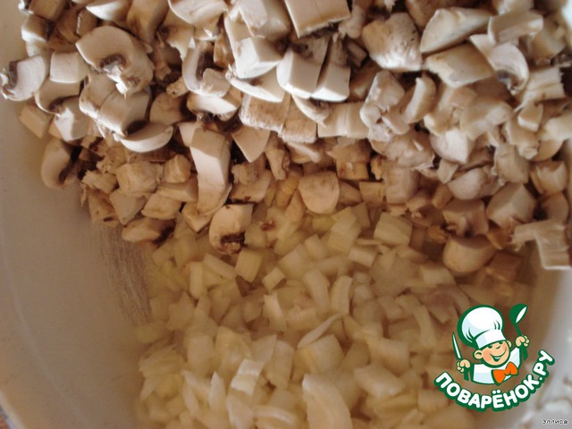 ...и смешиваем с грибами и луком.