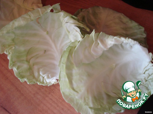 Отделяем листья капусты и бланшируем их.