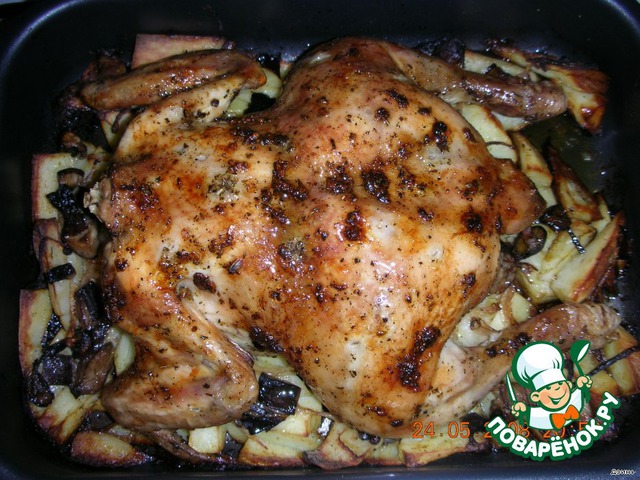 | Запеченной курицей никого не удивишь, у каждой хозяйки свой вариант запекания, маринада, начинки, гарнира, шубки, подушки и т. д. Моя курочка получается очень сочной и ароматной ))) |