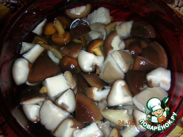 7. В смеси соевого соуса и уксуса маринуем нарезанный полукольцами репчатый лук