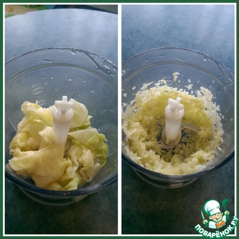 Затем перемолола в блендере слегка отвареную капусту (у меня осталась после голубцов).