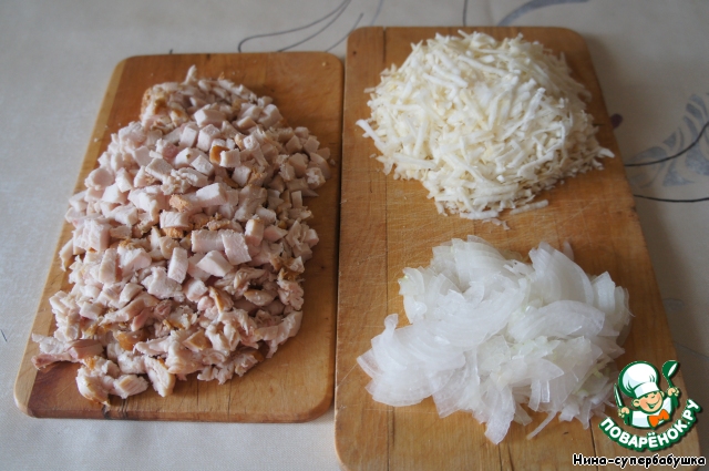 Подготовим продукты. У меня по весу как раз 1 копченое филе получилось.