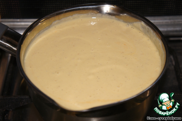 Снять соус с огня, влить морковный сок и перемешать. Если соус получится слишком густым, немного разбавить его горячей кипяченой водой.