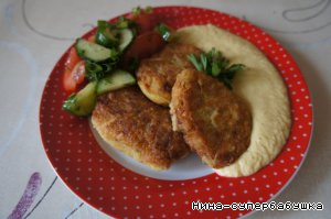 На ужин у меня были овощные котлетки с салатиком из свежих овощей. Соус пришелся, как нельзя, кстати)))