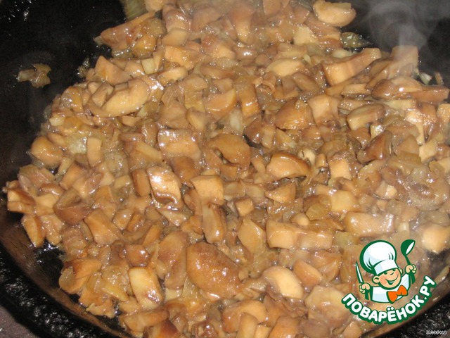Для соуса оставшиеся грибы обжариваем с луком до готовности.