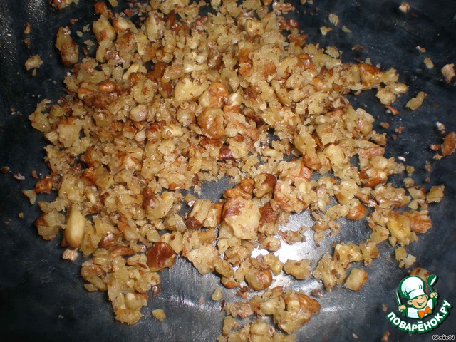 Орехи порубить в крупную крошку.