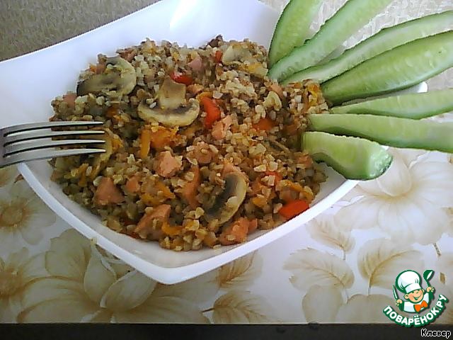 | Знаю, что греча полезна, но любит ее только муж, а я люблю овощи и грибы. А теперь это блюдо - наше любимое! |