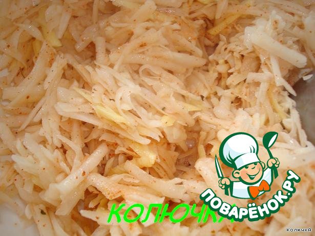 картофель трем на овощной терке я ее смешала с солью немножко и специями и немножко паприки.