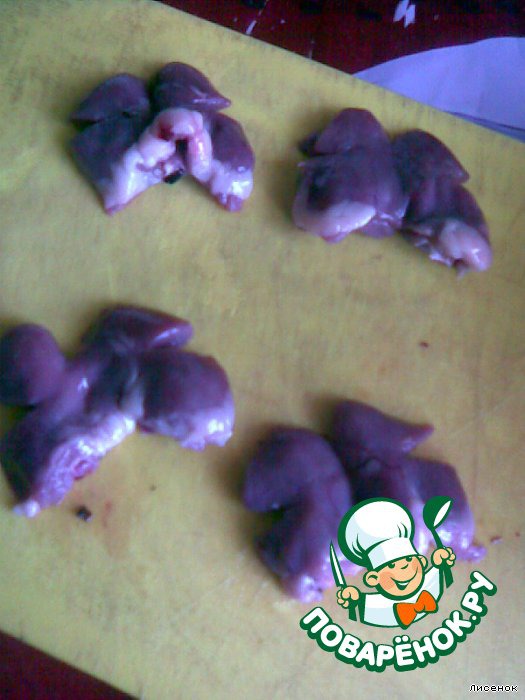 Подготовить сердечки, очистить от пленок, сгустков крови и трубок. Промыть