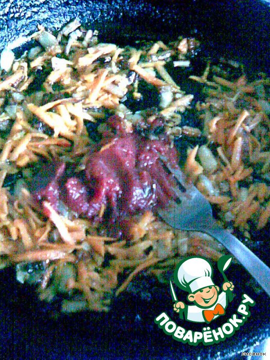 Перемешать, потушить еще минуты 3 и добавить воды.