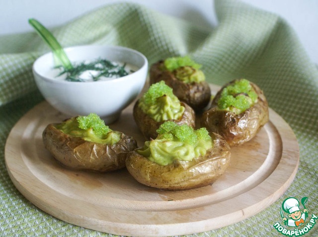 *Кто с чем, а я очень люблю картофель с икрой. Причем любой. Икра минтая/трески/мойвы/ щуки - вполне доступный продукт и практически не уступает в пищевой ценности икре благородных рыб. Хотя красная икра здесь будет смотреться очень выгодно. У меня на фото икра летучей рыбы (зеленая тобико с васаби).