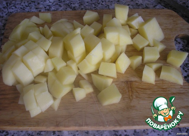 В это время готовим картофель и лук. Фотку выкладываю, чтобы видно было размер овощей.
