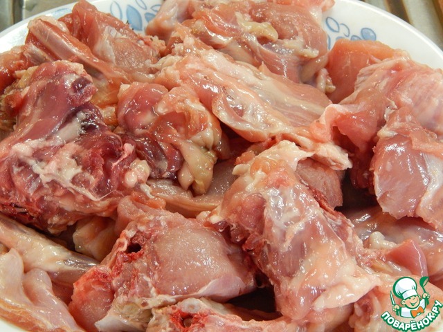 Подготовленного кролика нарезаем на кусочки приблизительно 5х5 см.