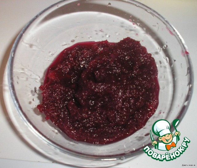 Отварить свеклу. Измельчить в блендере. Я добавила немного водички. Пюре должно по консистенции быть как густая сметана.
