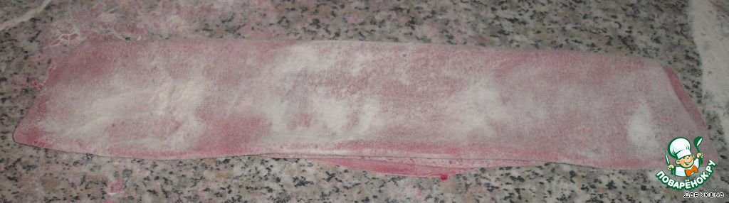 В тесто добавить3 ст. л. пюре из свеклы. Можно больше, если хотите более интенсивного цвета.