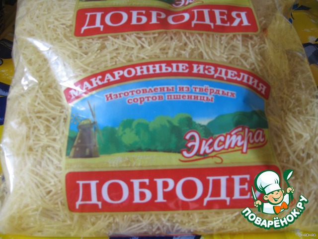 Берём вот такие макарошки, у нас их называют "паутинка".