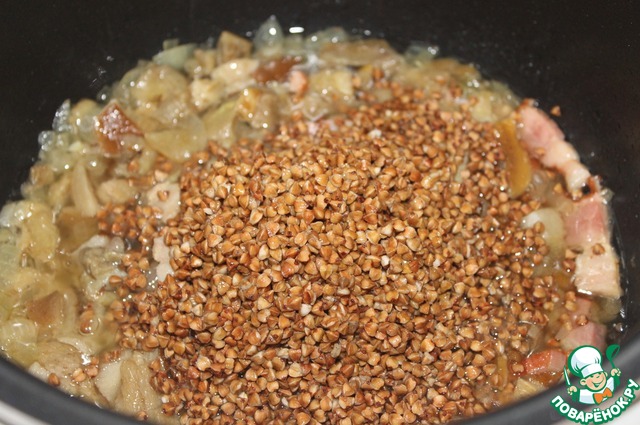 Рецепт "Каша гречневая с беконом и белыми грибами в мультиварке":