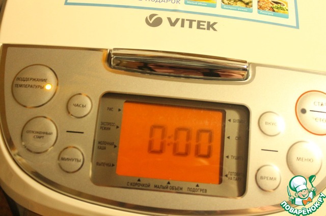 В чашу мультиварки VITEK VT-4203 SR наливаю оливковое масло, сливочное масло, включаю программу "Малый объем"