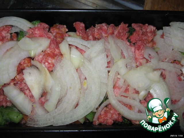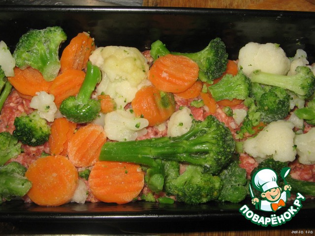 Далее смесь замороженных овощей. У меня была смесь с брокколи, цветной капустой и морковью. Можно использовать любую смесь, на Ваш вкус. Либо свежие овощи, только их нужно отварить до полуготовности.